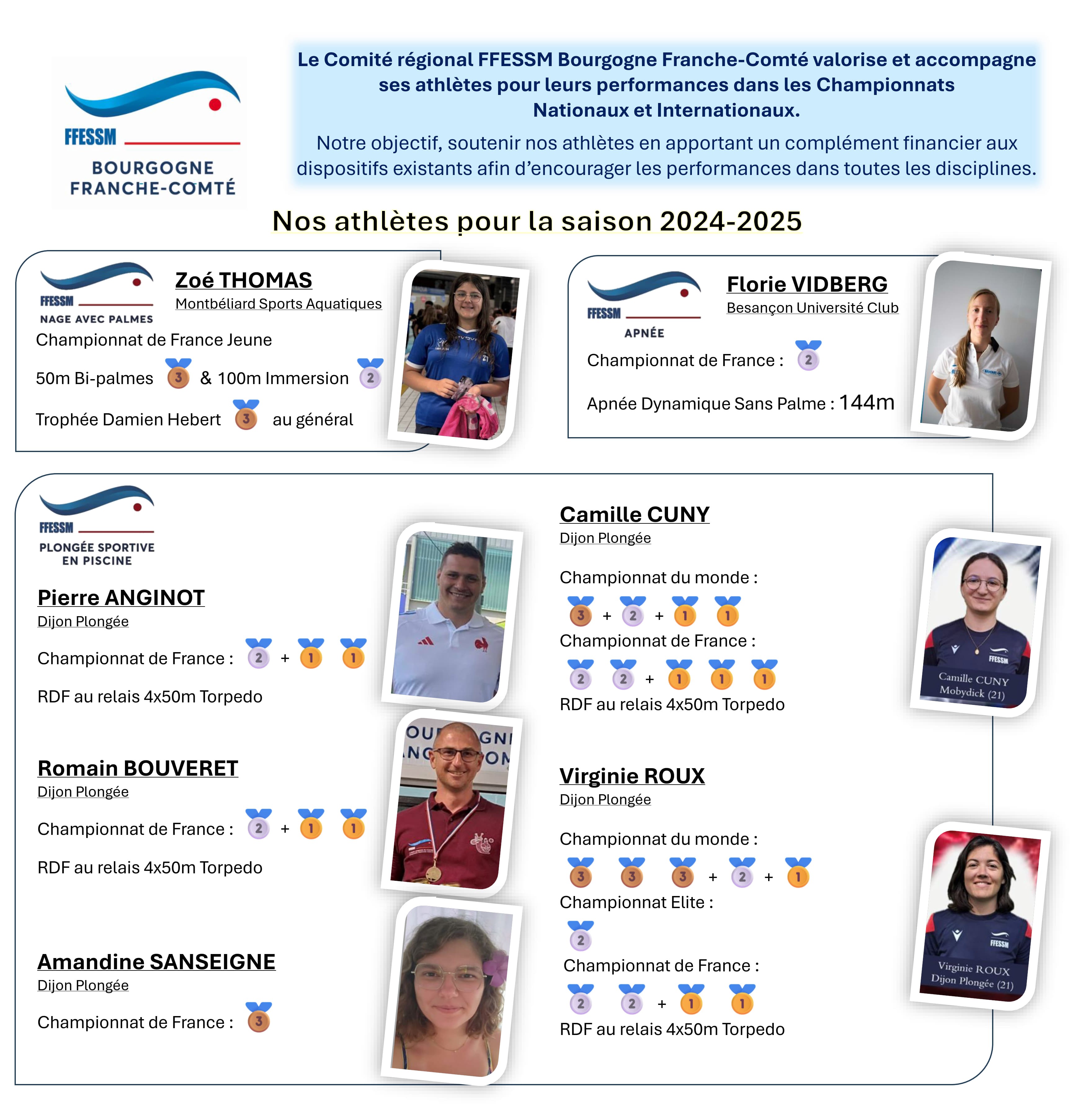 Le Comité régional Bourgogne Franche-Comté valorise et accompagne ses athlètes pour leurs performances dans des Championats Nationaux et Internationaux