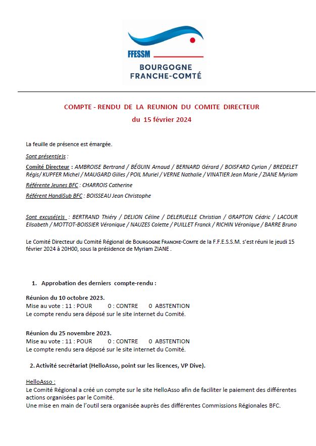 Compte rendu CODIR BFC