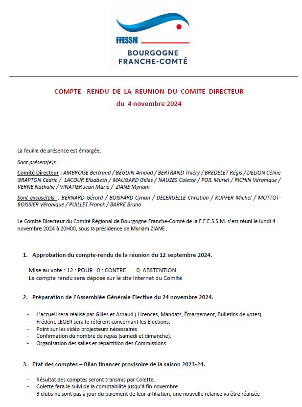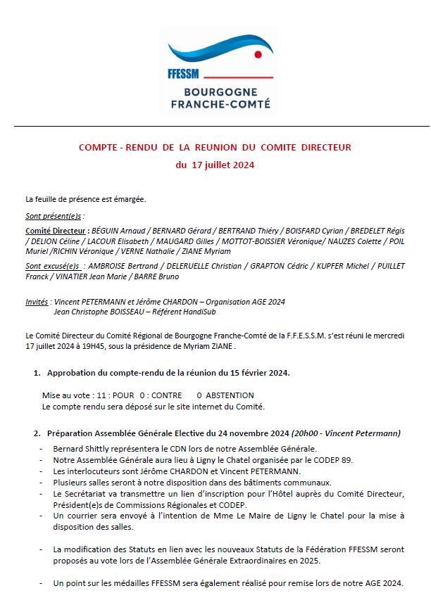 Compte rendu CODIR BFC avec les Présidents de CODEP et Commissions